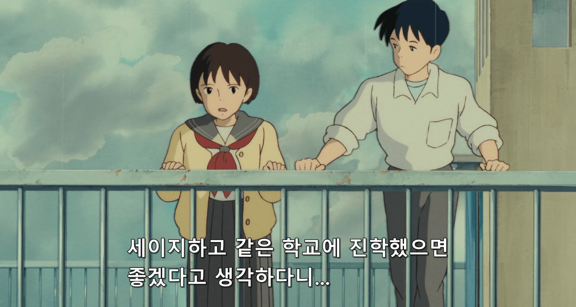 1995년 애니메이션임에도 불구하고 이상하게 레트로 감성을 느낄 수 있었고 거기에 지브리 특유의 감성까지 더해지면서 뭔가 마음이 편해지는 느낌을 받을 수 있었다. 지브리 애니메이션은 현실세계와는 벗어난 뭔가 판타지스러운 세계관이 특징인데 귀를 기울이면은 살짝 달랐다. 판타지 세계가 아닌 지극히 현실세계로 8,90년대 일본의 작은 도시가 배경이었고 마치 주인공인 시즈쿠의 집은 우리나라로 치면 8,90년대 주공아파트와 같은 곳이어서 오히려 지브리 애니메이션답지 않게 너무나 현실적이었다. 지브리 애니메이션의 장점인 판타지스러운 요소는 없었지만 그럼에도 불구하고 풋풋한 모습들을 너무나 아름답게 표현하고 있어서 자극적이지 않고 편안하게 볼 수 있어 마음이 힐링되는 애니였다.