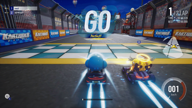 운영자체도 엉망이었지만 게임성도 원작에 비해서 많이 떨어지는 느낌이었다. 많은사람들이 원작과 비교가 안될 수준이라고 하는데 나는 원작자체도 많이 안해서 그 사람들이 말하는걸 전부 이해하지는 못했다. 그래도 몇몇부분은 이해할 수 있었는데 그중 하나가 바로 속도감이다. 그래픽은 좋아졌지만 카메라워킹이 별로인지 속도감도 너무 느렸다. 초기에는 속도가 느린 카트밖에 없어서 그런가 싶었는데 아니었다.. 결국 라이즈패치때 4가지 유형의 카메라 시점이 적용되면서 이 부분은 해소가 되었다.